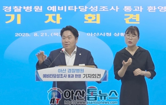 ▲ 21일 오세현 아산시장이 기자회견을 주재하고 있다. © 아산톱뉴스