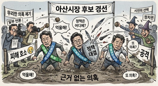 이에 대해 민주당 천철호 아산시의원은 7일 페이스북에 “4년 전 실체 없는 의혹이 아산을 뒤흔들면서 참혹한 대가를 치렀다. 지금 이 비극이 또다시 반복되려 한다”며 “같은 편이 4년 전처럼 의혹 프레임을 들고 나왔다. 안 예비후보에게 정중히 요청한다. 잘못된 전술을 바로잡지 않으면 평생 꼬리표가 될 수 있다”고 요청했다.